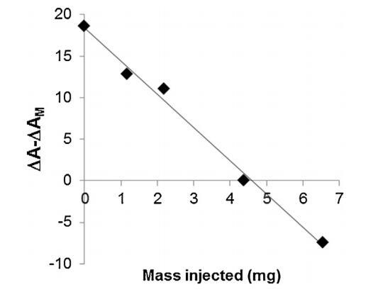 圖6。相對面積隨注射到亞相的脂質體質量的變化。線性回歸的R2為0.992。
