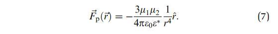 正如預(yù)期的那樣,對于較大距離,它減少到兩點(diǎn)偶極子r 4的力。這些表達(dá)式不描述實(shí)驗(yàn)相關(guān)區(qū)間(2+0.1)R 10R內(nèi)的域之間的相互作用,因此必須對等式(4)進(jìn)行數(shù)值積分。與解析表達(dá)式相比,該4D積分在模擬中代表了更多的計(jì)算工作量。這就是為什么更容易近似磁疇中心點(diǎn)偶極子的相互作用,偶極矩mi表示磁疇區(qū)域上的偶極密度,mi=sAi。然后,垂直于界面的點(diǎn)偶極子的對電勢為