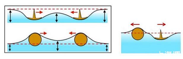 為什么漂浮在液面上的兩固體,均比水重或均比水輕時表面張力使之相互接近;一個比水重一個比水輕時相互遠(yuǎn)離?