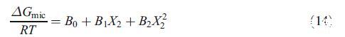 為了補充混合膠束分析的穩定性,我們還使用了Maeda的方法,該方法還考慮了混合膠束中的疏水鏈-鏈相互作用,特別是當鏈長度不同時[21]。簡言之,根據Maeda的模型,離子物種向非離子膠束的轉移包括兩種不同的貢獻:極性頭部基團之間的相互作用和疏水鏈之間的相互影響。當疏水鏈相似時,第一貢獻占主導地位,然而,當疏水鏈長度不同時,這些鏈之間的相互作用變得更為主導。Maeda的方法強調,除了從規則溶液理論獲得的相互作用參數之外,還有另一個參數(B1),該參數有助于在用離子單體替換非離子純膠束中的非離子表面活性劑單體時混合膠束的穩定性。這一過程是由于組件之間的短程相互作用而產生的。在該模型中,膠束化自由能(ΔGmic)作為混合膠束中離子物種摩爾分數的函數給出如下[21,24]: