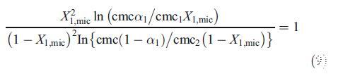 為了討論由兩種二元混合物形成的混合膠束的性質(zhì),即混合膠束是否顯示理想或非理想行為,我們使用了偽相分離模型[19]。根據(jù)該模型,膠束被認為是與含有相應(yīng)單體的溶液平衡的宏觀相。對于二元表面活性劑混合物,理想cmc由方程[19]關(guān)聯(lián):