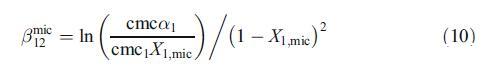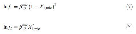 這些結(jié)果可以通過使用規(guī)則溶液理論(RST)得到證實,該理論不僅表征了混合膠束中的相互作用參數(shù)bmic 12,還解釋了偏離理想狀態(tài)的原因[20]。根據(jù)RST,混合膠束中的活性系數(shù)表示如下: