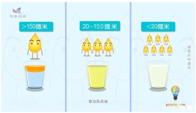 油是怎么存在水中的?油在水中的存在形式,根據油滴的粒徑,可以分為三類,油滴粒徑大于150微米稱為“浮油”,這也是油進入水體的主要存在形式;油滴粒徑在20-150微米之間稱為“分散油”;油滴粒徑小于20微米的稱為“乳化油”。不管是表面活性劑穩定的油滴,還是無表面活性劑穩定的油滴,極小的乳化油以油包水或水包油的形式懸浮于水中。