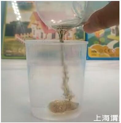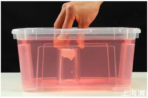 解密時刻:水不溶于油且水比油重,顏料在油中會下沉,下沉到水油交界面時,顏料溶于水中,于是就看到了彩虹雨。