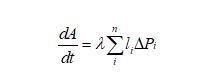 下面我們推導二維泡沫的演變方程,由于任一氣泡跟周圍氣泡的氣體交換都是通過氣泡邊界進行的,則氣泡體積(二維氣泡用面積表示)隨時間的變化率跟邊界長度和邊界上的壓強差都有關系,可以表示為