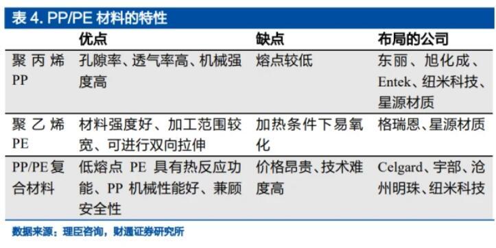 鈉電池的電解液和隔膜均具備成熟的量產技術。電解液在電池中起傳導離子的作用,其中主要由溶劑、電解質和其他添加劑組成。鋰電池的電解質為六氟磷酸鋰,而鈉電池的電解質為六氟磷酸鈉。隔膜主要起分隔電池正負極,防止兩極接觸而短路的作用,并且隔膜還需要支持電解質離子通過,鈉電池和鋰電池均使用PP或者PE隔膜。