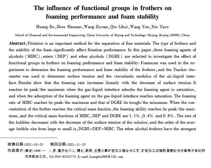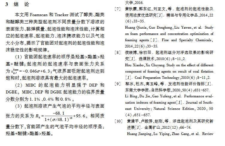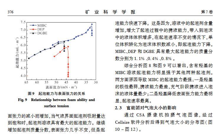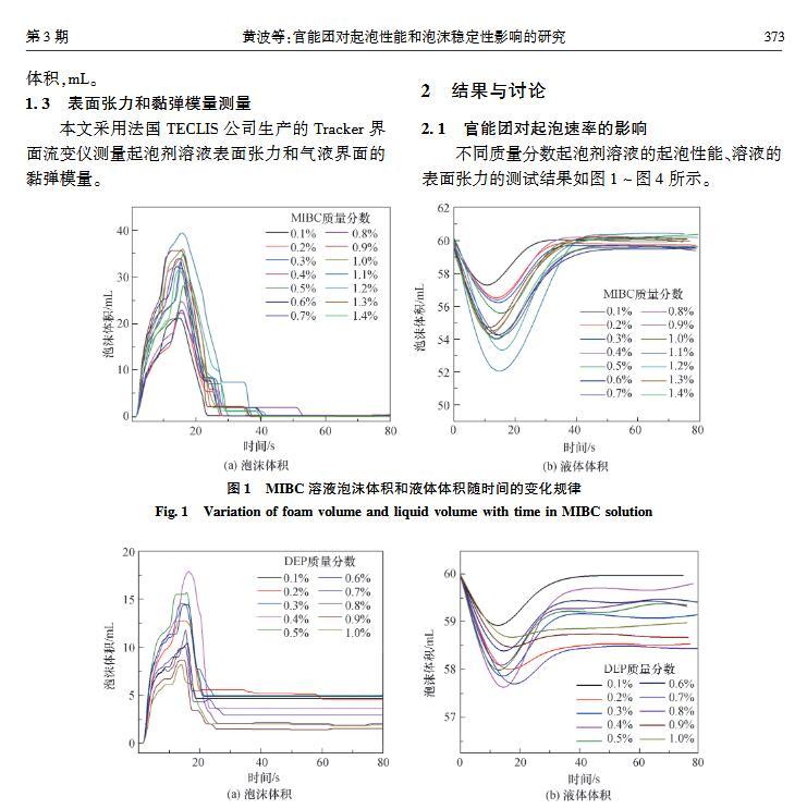 官能團對起泡性能和泡沫穩定性影響的研究
