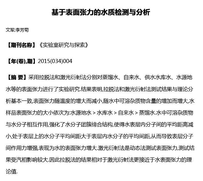 基于表面張力的水質(zhì)檢測(cè)與分析