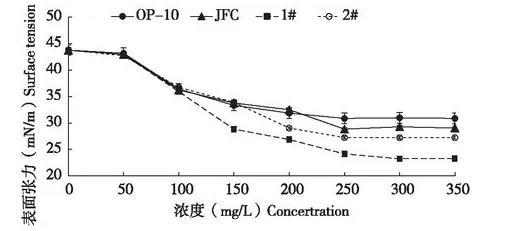 水稻是疏水性植物,只有當藥液的表面張力小于葉片的臨界表面張力,藥液才能在葉片表面潤濕展布。常用藥劑在推薦施用濃度下的藥液表面張力往往大于水稻葉片的臨界表面張力,難以在水稻上沾濕鋪展,藥效低。選用合適的表面活性劑來改變農藥藥液的表面張力,便可提高農藥在水稻葉面上的沾濕能力,本文選擇了幾種助劑與2.3%甲維鹽微乳劑混配,測試干燥時間、表面張力對其葉面上的持留量關系,評價這種方法的可行性,并為2.3%甲維鹽微乳劑尋找適當的助劑。