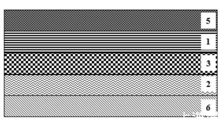 將本實施例的BOPP薄膜用于制備熱復合基材,通過熱復合功能層與共聚丙烯材料或/和聚乙烯材料復合,具體地,本實施例是與石頭紙蜂窩板5熱復合,復合后的結構請參閱圖3,復合完成后,測試復合效果。復合方法包括以下步驟:首先在BOPP薄膜的可印刷表層上直接進行耐溫油墨印刷,其中最后一道為耐溫保護光油,形成油墨層6,然后輕度熱壓使薄膜與表面達到一定溫度的石頭紙蜂窩板直接熱壓復合,熱復合工藝條件如下:溫度為130℃,封合時間為2s,熱壓壓力為8kg/cm2